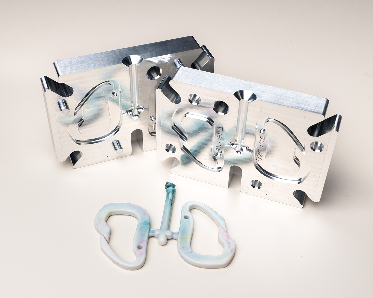 今回導入いただいたのは、プラスチックの粉砕から成形までを一貫して行える設備(粉砕機・射出成形機)と、地域の特色を活かした製品を作るための金型です。クオケア様の所在地である「滋賀県」ならではの製品を作るため、オリジナルの金型を設計・製作しました。