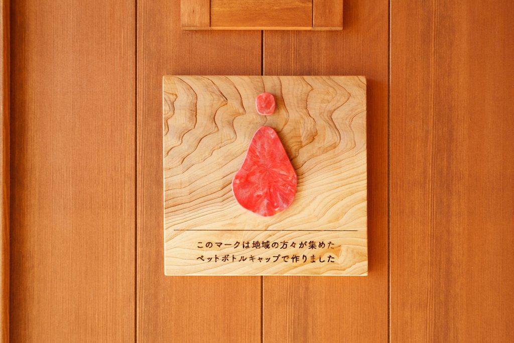 この施設は「地域の誰もが集いつながる場」をコンセプトとしています。 そのコンセプトを象徴する取り組みとして、地域の方々が自分たちで集め、洗浄・乾燥させたペットボトルキャップを原料としたサイン製作を行いました。